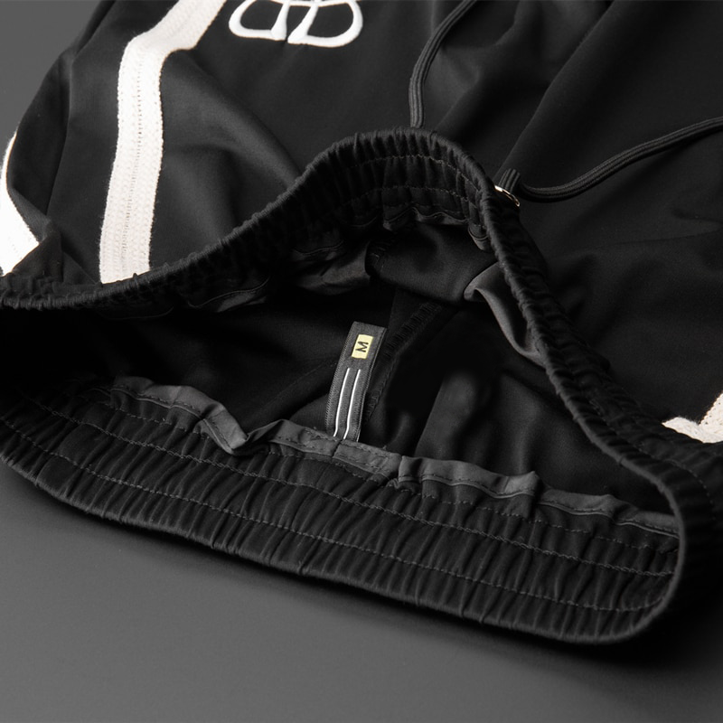 Cut to a relaxed fit, the pair boasts an elasticated waistband accompanied by lighter drawstrings.